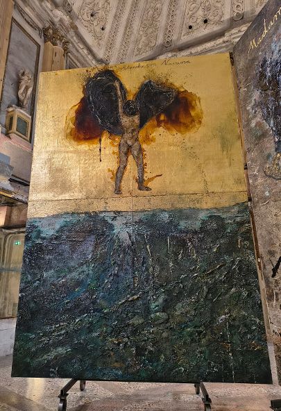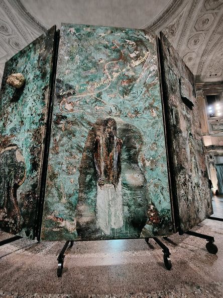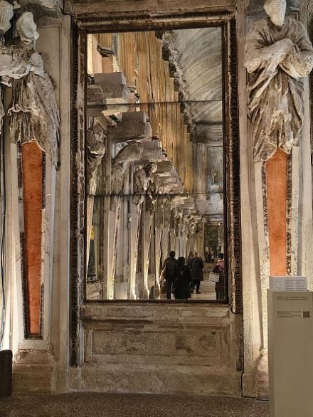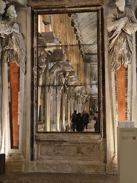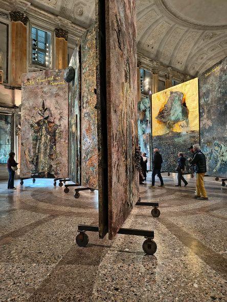 In questa grandiosa scenografia hanno molta importanza anche la luce e gli specchi che riflettono le opere e gli spazi, frutto di un accurato studio dell’artista.