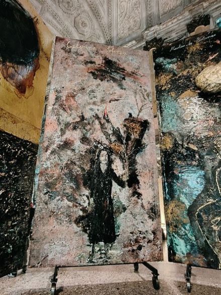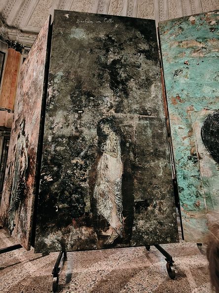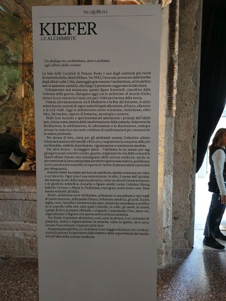 Nella Sala delle Cariatidi, spazio quanto mai ricco di suggestioni, sono esposti i grandi teleri (tele di oltre 5 metri per 3) che Anselm Kiefer ha realizzato per celebrare alcune donne che, controcorrente per i loro tempi, hanno esplorato il mondo alchemico in diversi campi dalla ricerca della pietra filosofale ad altri processi chimici, dalla erboristica alla geologia, dalla farmacopea alla cosmesi, lavorando e sperimentando con alambicchi, fornelli e calderoni.