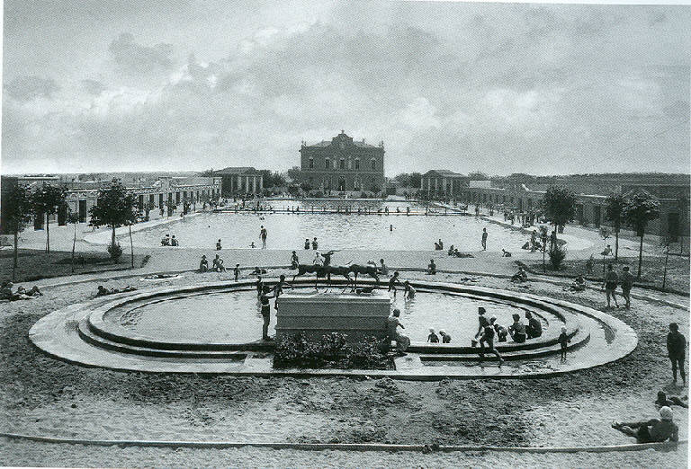 Secondo il progetto dell’ingegner Secchi l’acqua per queste due vasche veniva prelevata direttamente dal sottosuolo, depurata e sterilizzata automaticamente. Intorno alle vasche c’erano cabine in muratura, un bel porticato, un’ampia zona a verde e per le sabbiature. Completavano la struttura tre begli edifici, riservati agli ingressi e ai servizi (anche docce calde).