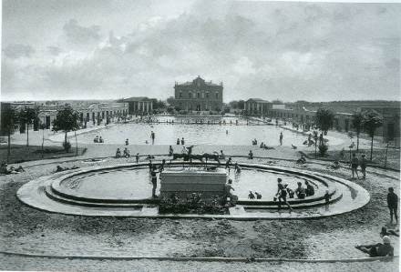 C’erano due grandi vasche: una più grande e profonda, (di circa 100 per 40 metri) rettangolare ma con i bordi stondati agli angoli per evitare ristagni, riservata ai nuotatori, l’altra, realizzata in seguito, per i bambini, che con i loro costumini in lana sferruzzati da mamme e nonne, giocavano all’aperto, prendevano un po’ di sole e familiarizzavano con l’acqua.