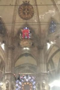 Questa “nivola” (forse ideata daLeonardo) fu dipinta da Landriani nel 1612 con angeli e cherubini avvolti in soffici nubi. Al termine della cerimonia viene poi avvolta in teli e collocata sopra una porta laterale del Duomo. E’ un vero peccato che la si possa ammirare solamente “in azione” da lontano e durante il rito.