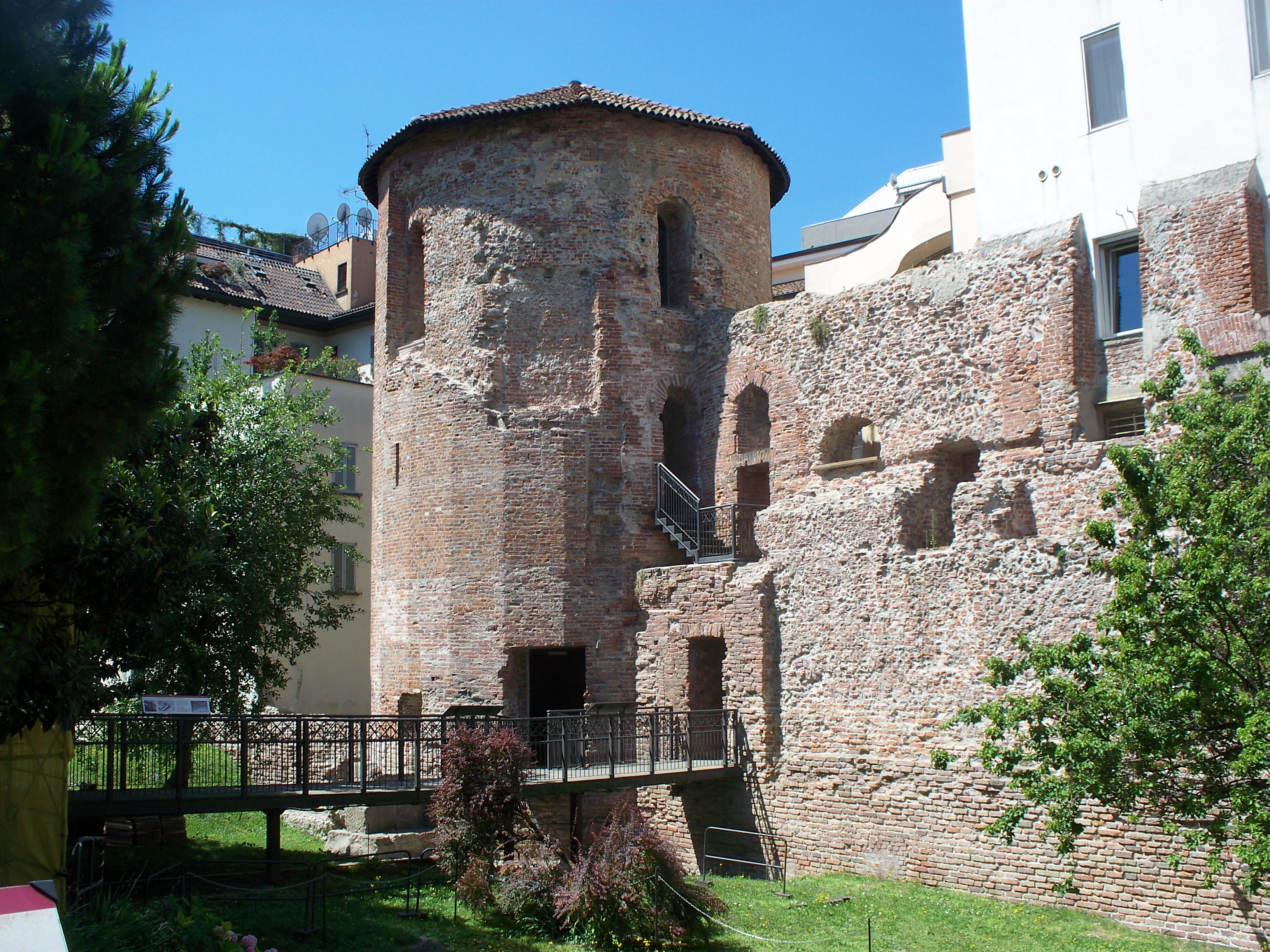 Accanto a questa si trova un’altra torre, poligonale con ben ventiquattro lati, che faceva parte delle mura di Mediolanum ed che ora, splendidamente restaurata, costituisce un settore del Civico Museo Archeologico.