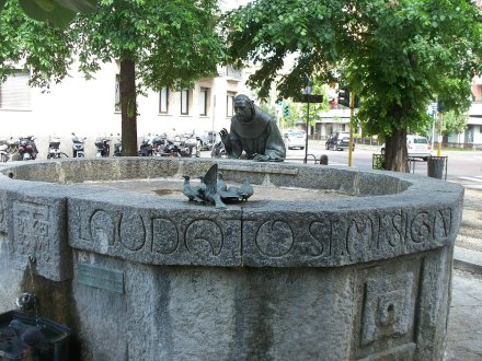 E’ una delle più amate dai milanesi, con la statua del Santo mentre predica a delle deliziose tortorelle di bronzo, spesso affiancate da veri piccioni. Sul bordo della fontana alcune parole del Cantico delle Creature.