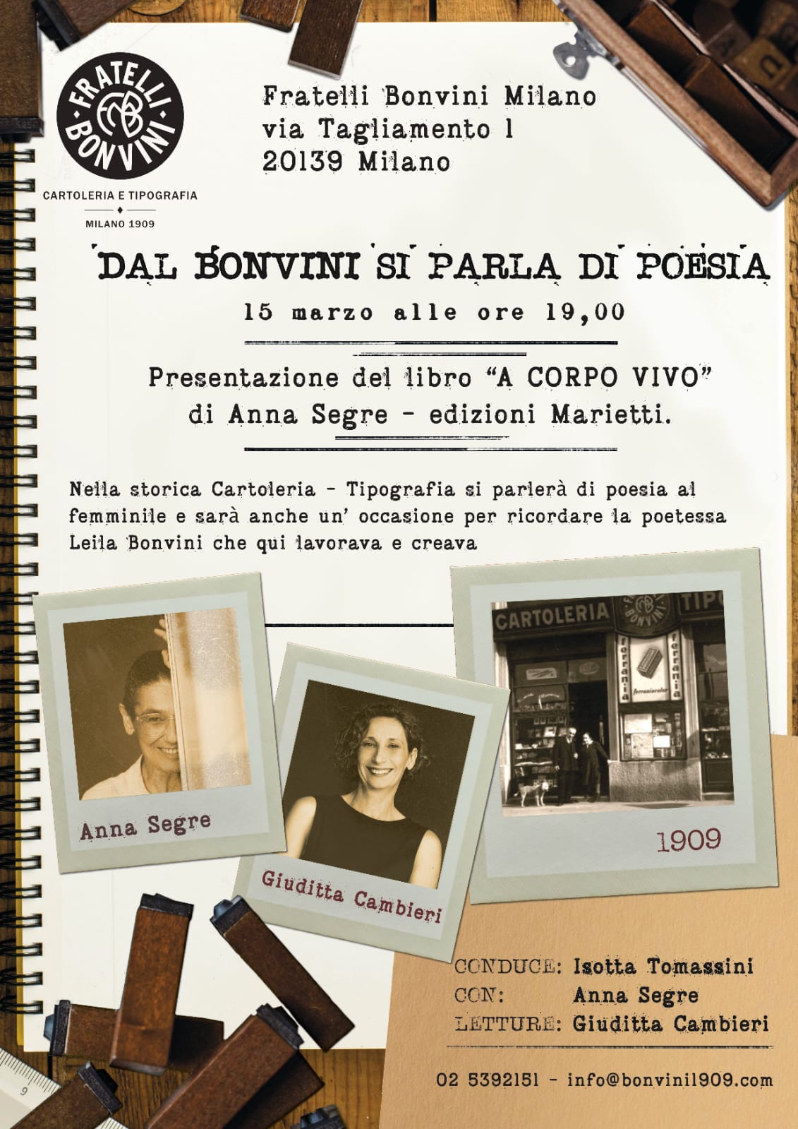 Da una decina d’anni la “Bonvini” è passata a un gruppo di soci che ha voluto mantenere intatta la vecchia bottega con un attento recupero. Oltre alla vendita di materiali per la scrittura, di libri e di stampe artistiche scelti sempre con appassionata attenzione, vi si tengono incontri, corsi, mostre ed eventi come questo sulla poesia.