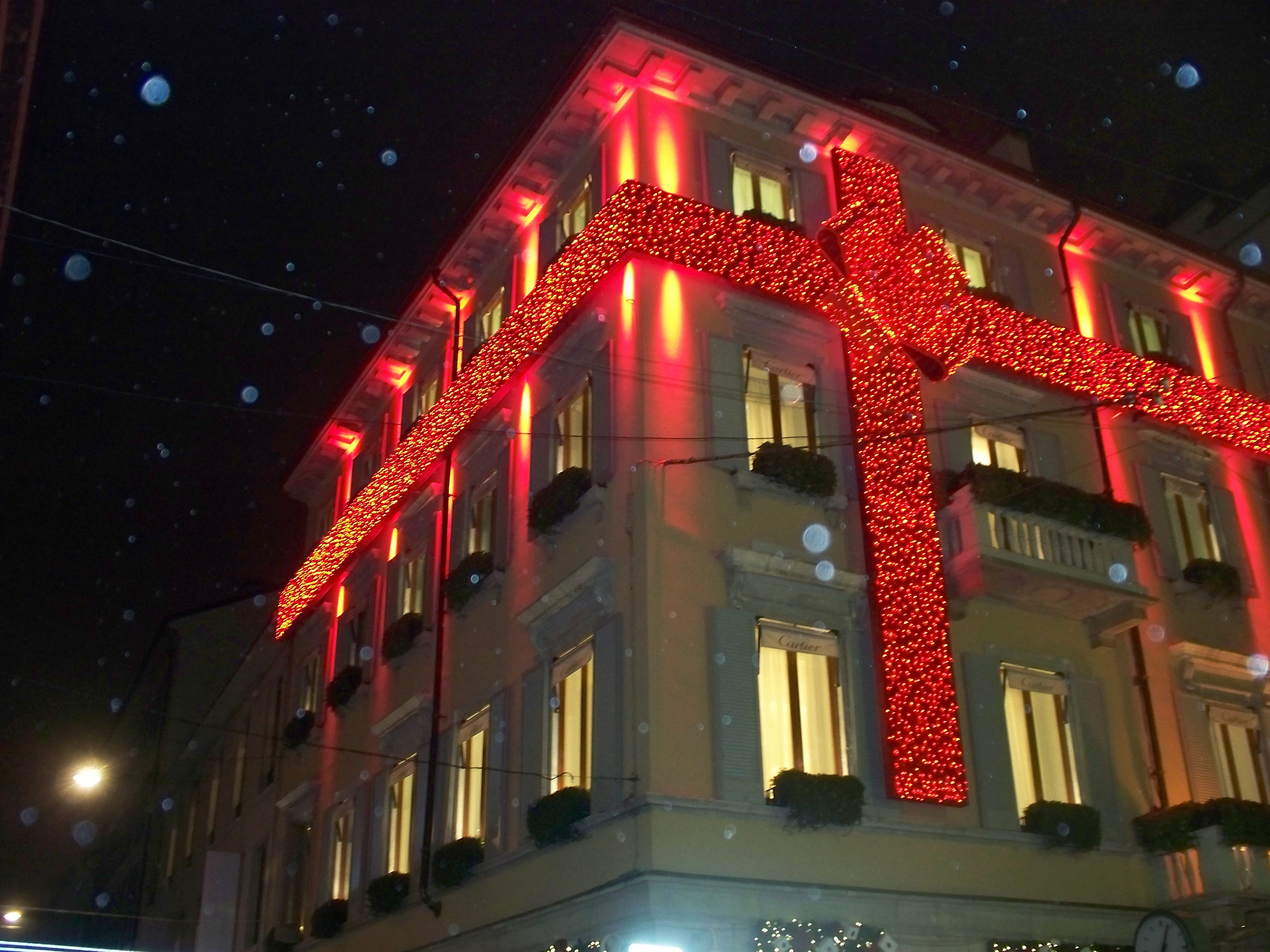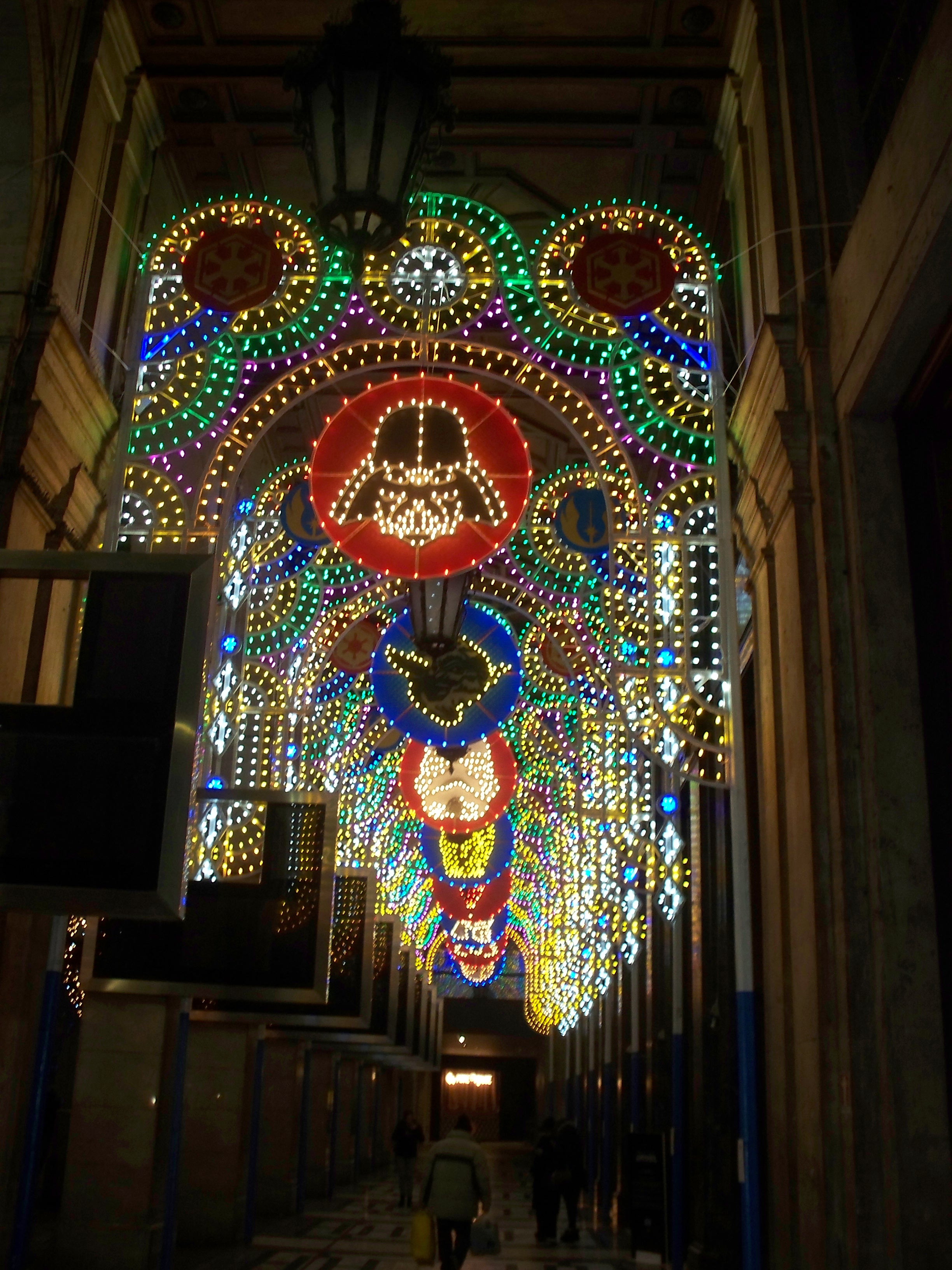 Alberi illuminano anche i negozi e i locali per attirare il pubblico e condurlo nel lungo viaggio verso il Natale.