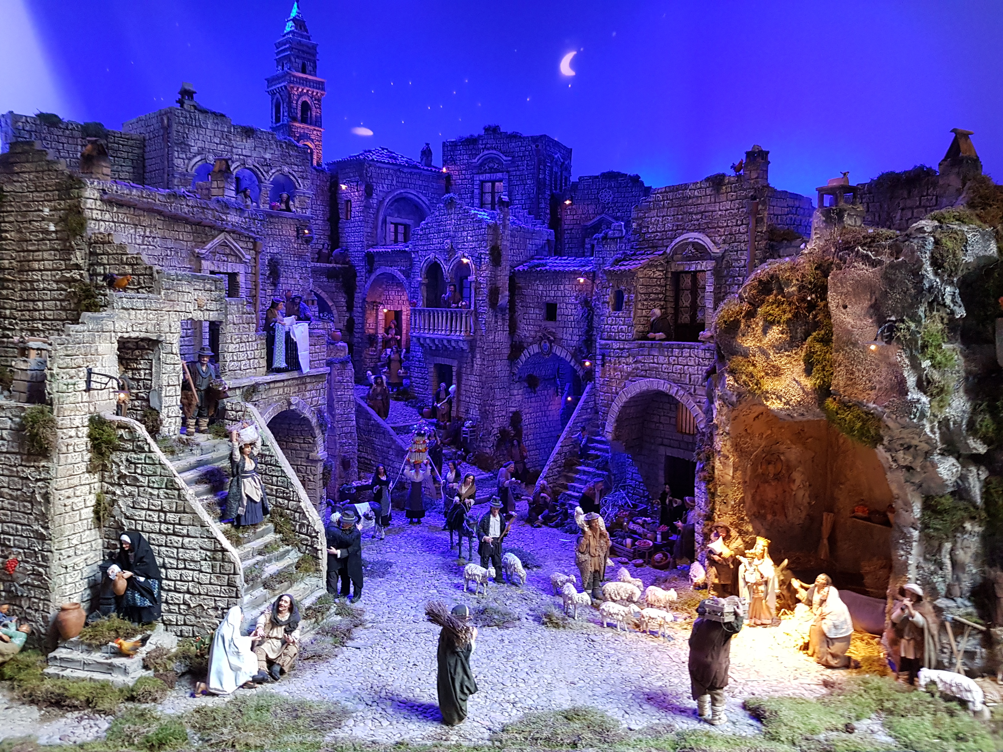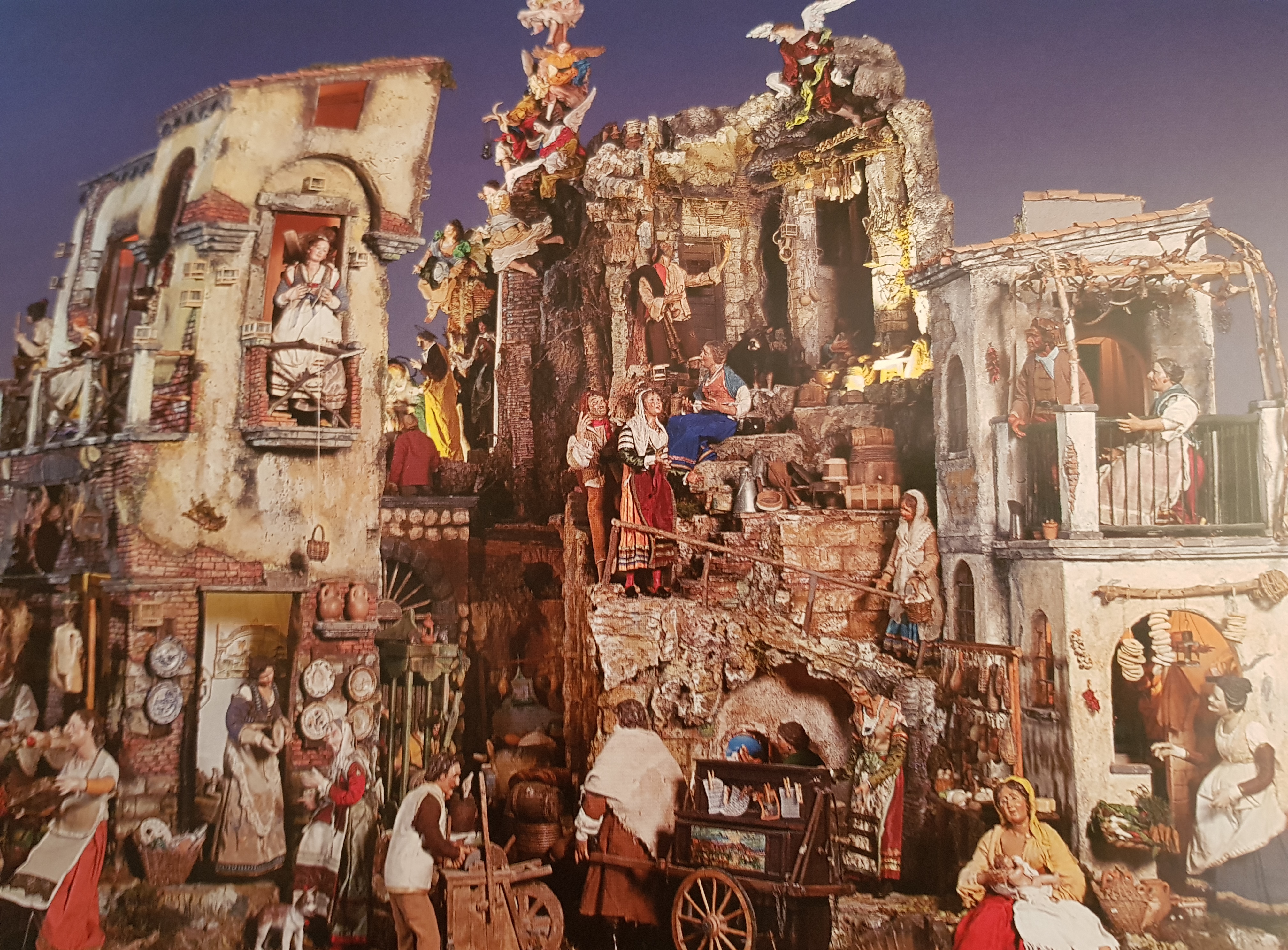 Il Presepe è un villaggio di simboli, quasi un fermo-immagine della Natività. Si ripete in luoghi e tempi diversi; infatti non si riproduce solo un villaggio palestinese di quell’epoca, ma possono fare, via via, la loro comparsa anche personaggi anacronistici per quel periodo.