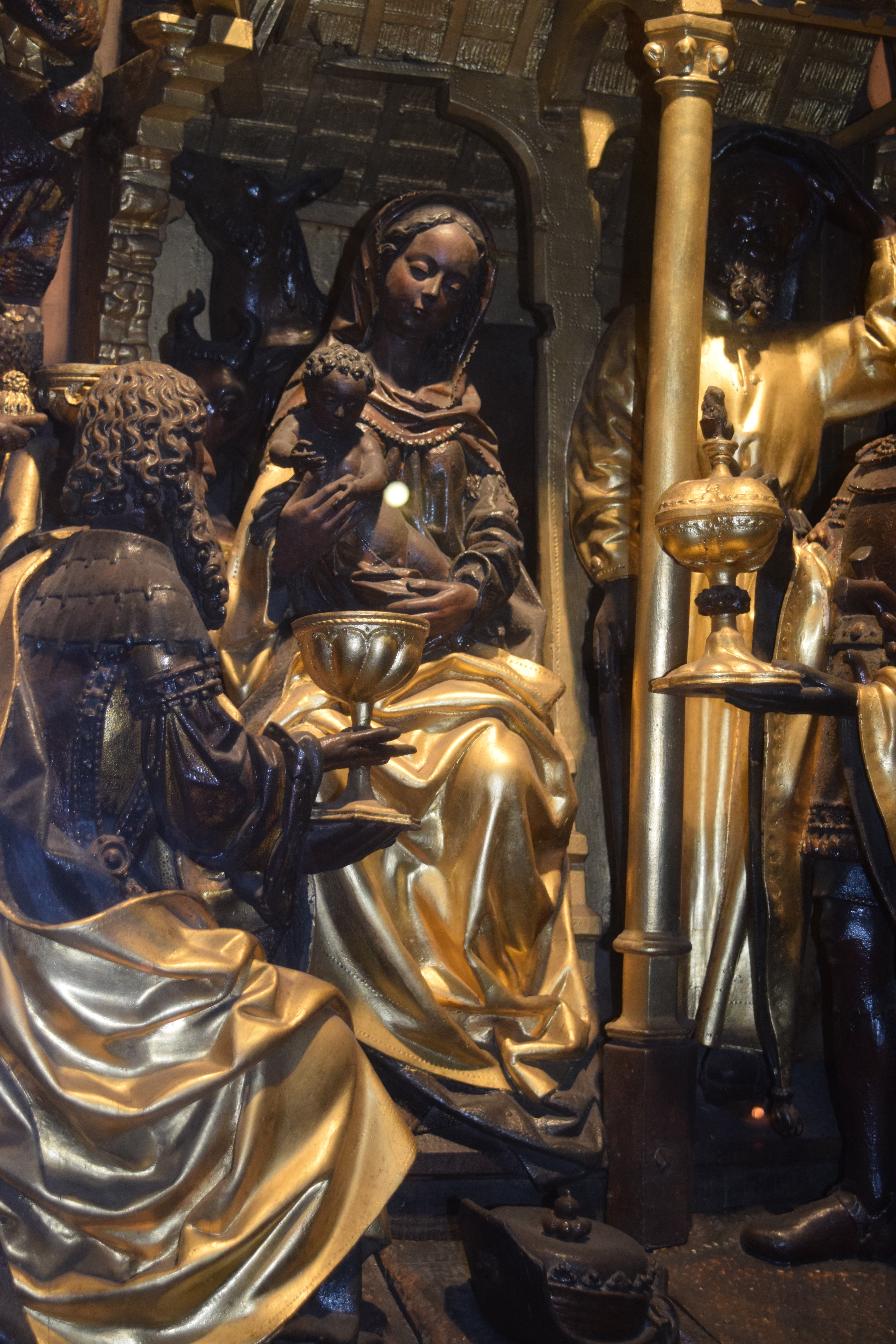 L’idea dell’albero torna dunque in questo bellissimo altare ricavato da un tronco di ulivo dallo scultore contemporaneo Carlo Natale Basilico, autore anche del leggio ligneo. Nel basamento dell’altare è rappresentata la Creazione di Adamo ed Eva, con le mani protese verso quelle creatrici divine. Una curiosità: le mani di Dio sono una maschile e una femminile.