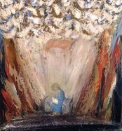Se guardiamo con attenzione, al centro del dipinto, sotto la nuvola, viene ripreso un particolare della basilica di corso Garibaldi, che sottolinea ancora una volta il legame tra le due chiese.