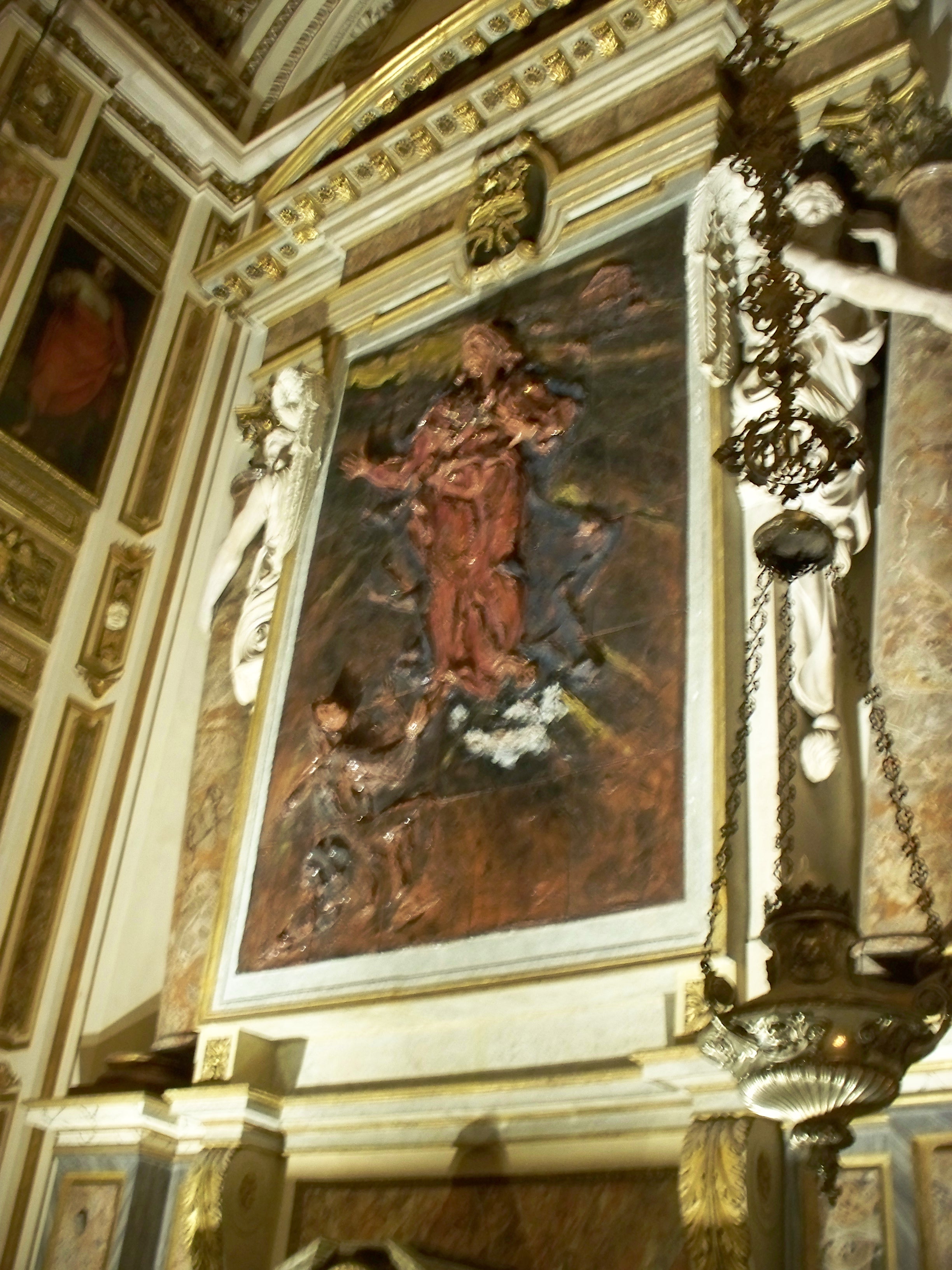 La volta è impreziosita da affreschi dei Fratelli Carlone con le storie della Croce (“La Croce appare a Costantino“; il “Ritrovamento della Croce da parte di Elena madre di Costantino“; “Eraclio, in vesti umili, riporta la Croce a Gerusalemme“…) che ci fanno stare con lo sguardo all’insù. Tra marmi, intarsi e dorature ci ha colpito la Cappella delle Reliquie, con una lapide che ricorda quelle qui custodite, tra le quali un frammento della Santa Croce. Dove? Incuriositi, le stiamo cercando… Ci stiamo lavorando.