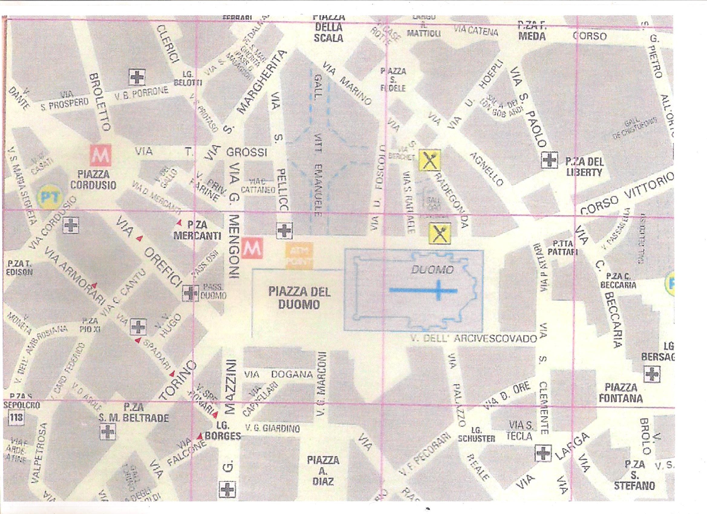 Tornando verso via Torino guardiamoci attorno: nello stesso isolato dei Grifi ci sono negozi di moda, un pub e un centro Hare Krishna.