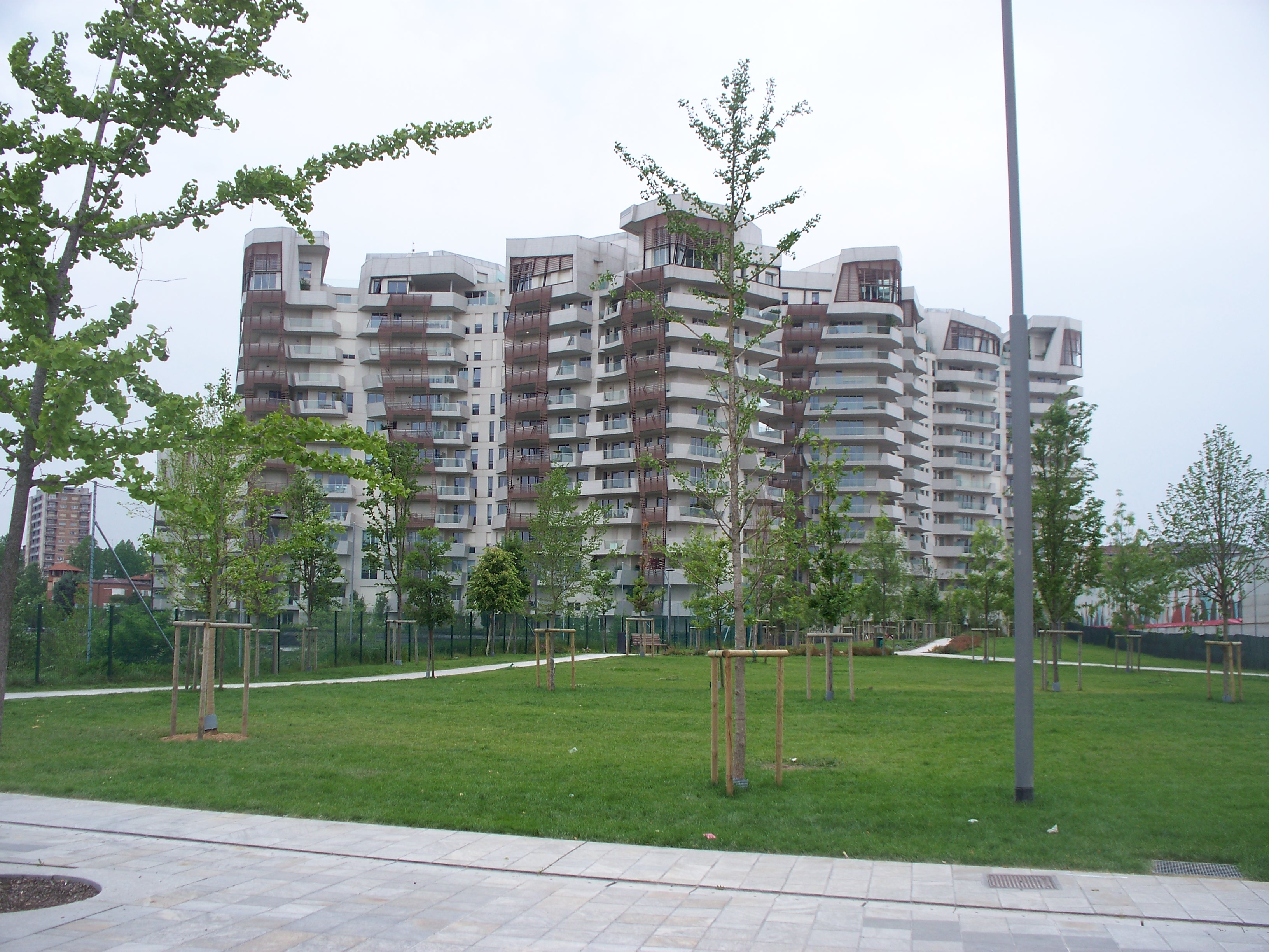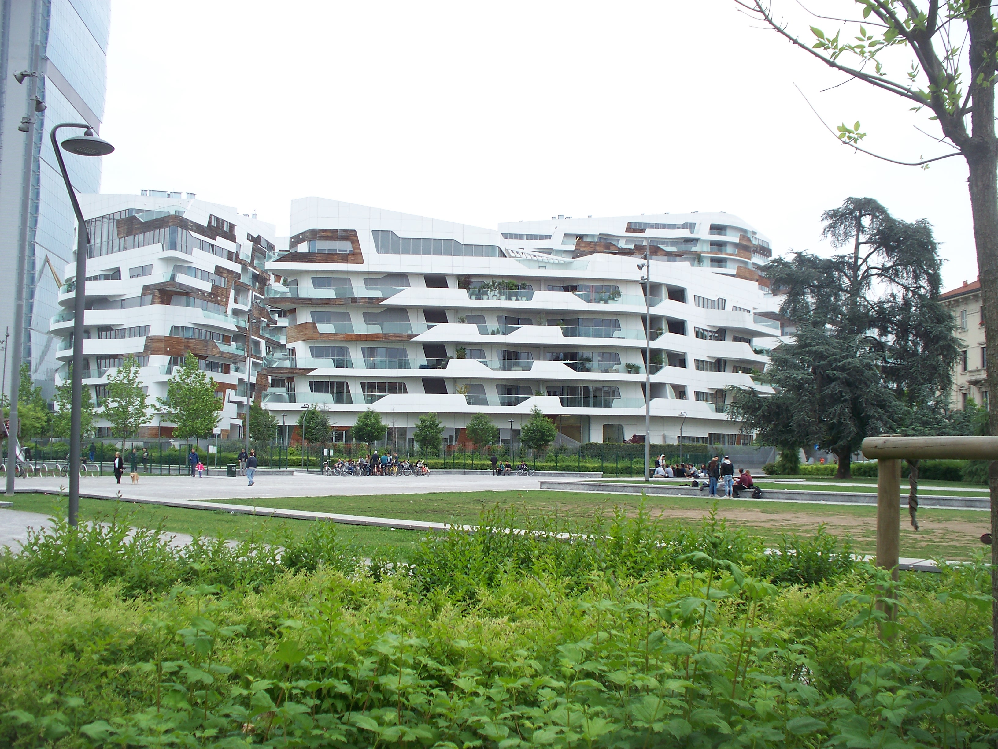 In questo nuovo quartiere, dove un tempo non lontano c’era la vecchia Fiera Campionaria, ora ci sono torri e case firmati da archistar internazionali come Isozaki, Hadid e Libeskind, ampi spazi per passeggiare, giocare, leggere o chattare.