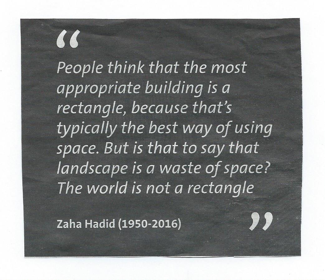“Il mondo non è un rettangolo… forse che il paesaggio è uno spreco di spazio?” Grande Zaha!