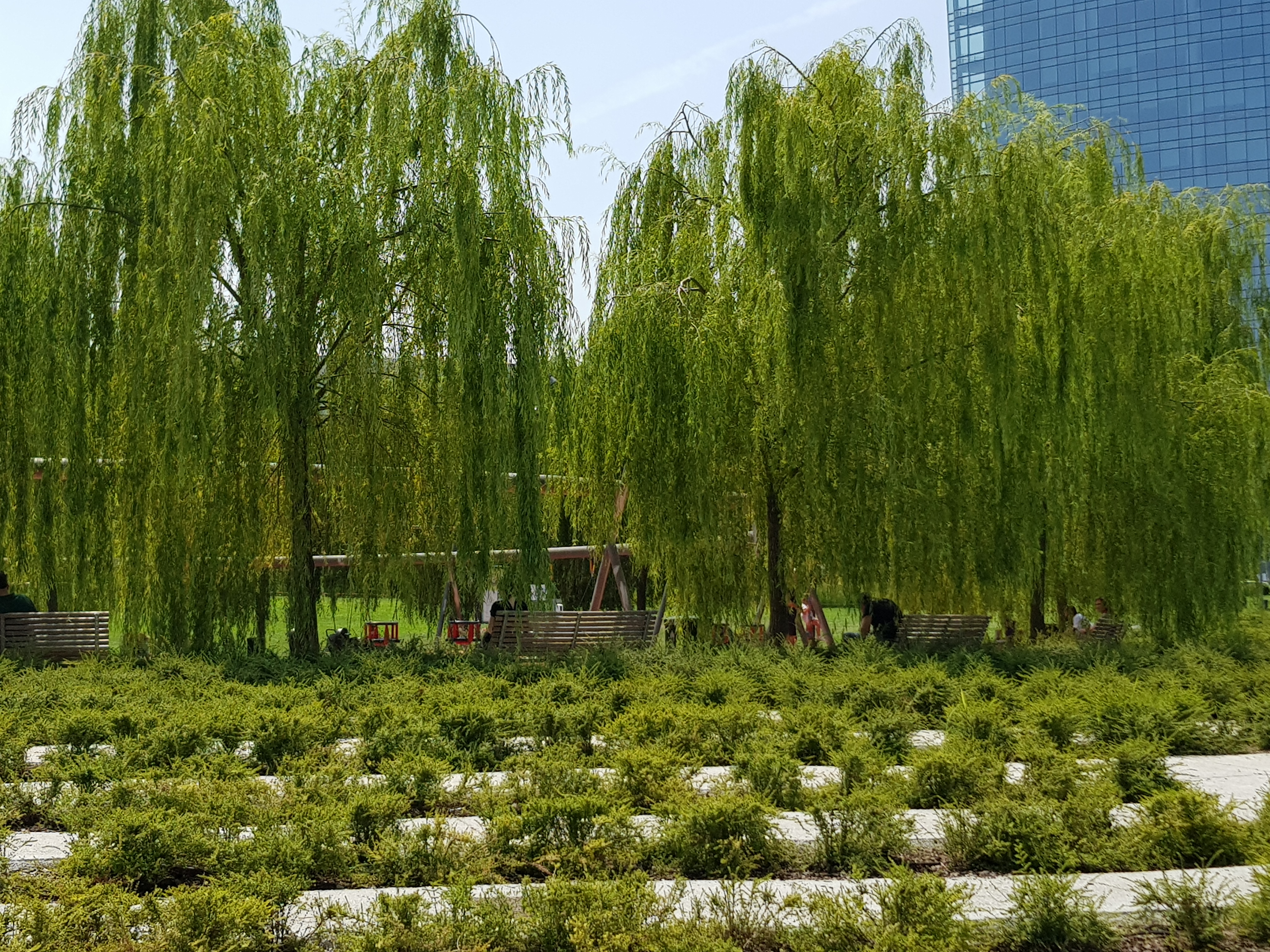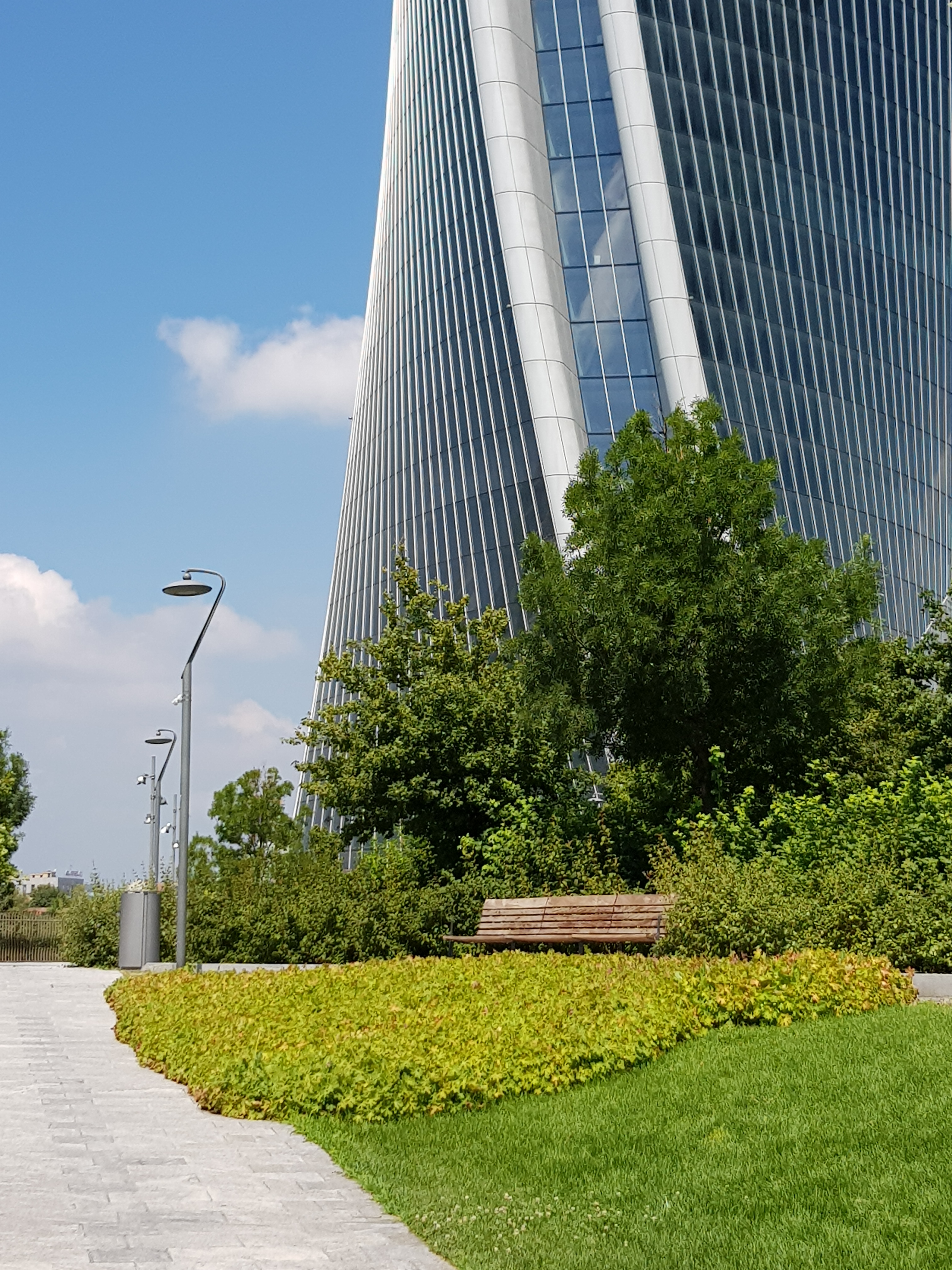 A CityLife, a fianco delle torri, tra i palazzi, simili  a navi da crociera, di Zaha Hadid e quelli più spigolosi di Libeskind, troviamo sinuosi collegamenti verdi, prati che invitano a giocare o a riposare, alberi ancora in crescita con tante panchine tutte da godere.