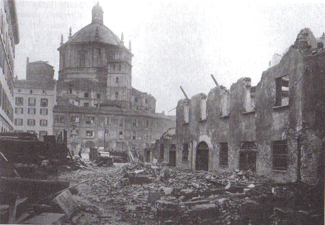 I bombardamenti avevano distrutto il nobile palazzo dei Gorani. Si sono salvati solo la bella torre medievale e il portale d’ingresso, che ancora oggi possiamo vedere.