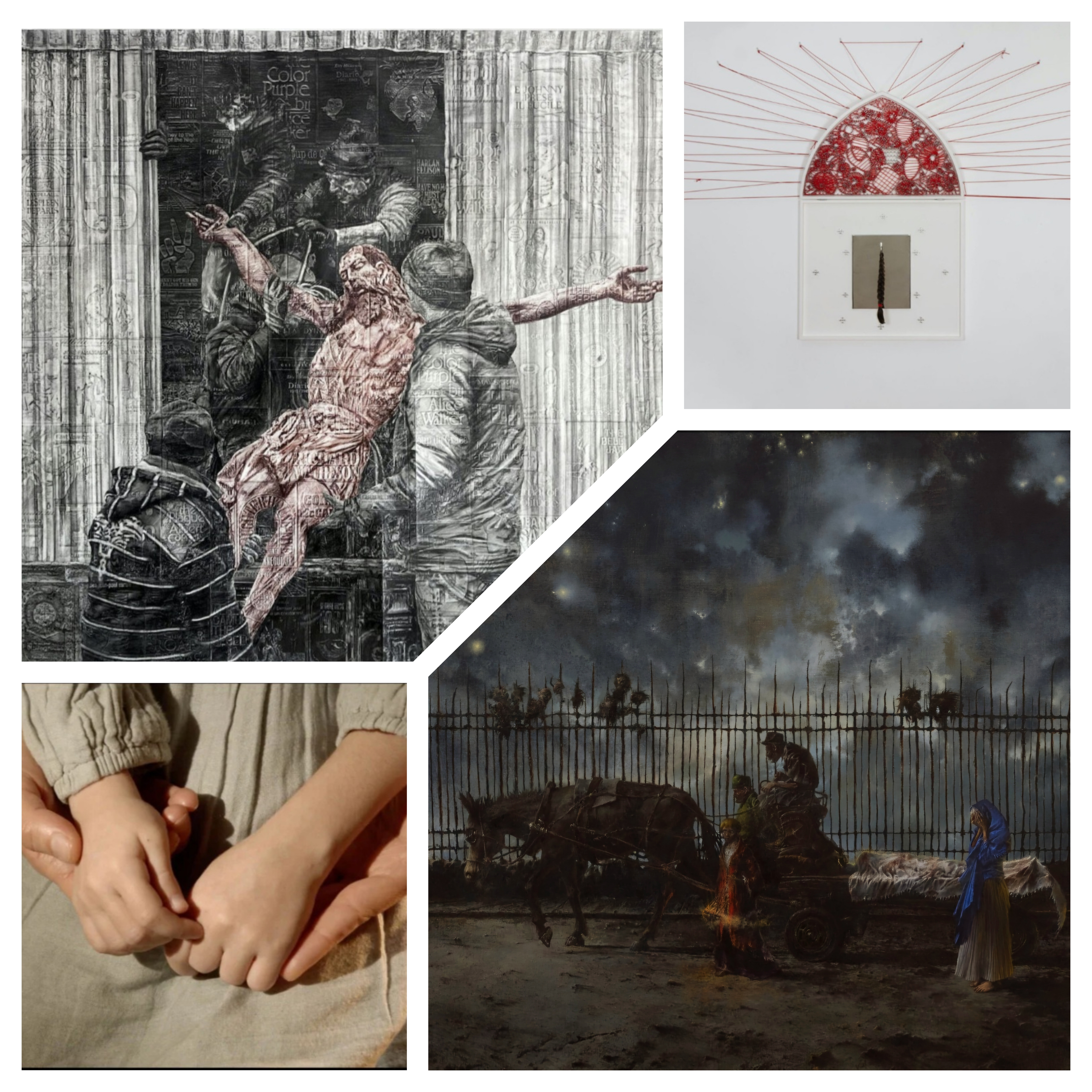 Avviciniamoci a questo dipinto poco a poco. Guardiamo l’ambiente che risulta piuttosto buio (siamo di notte), ma rischiarato da due fonti luminose: il fuoco resta sullo sfondo, in secondo piano; accanto ad esso un’altra levatrice, quasi in ombra, scalda il panno in cui sarà avvolto il piccolo Gesù. In primo piano il Bambinello emana una luce intensa che illumina le persone attorno a lui; ancora una volta umano e divino insieme. Ecco come vengono messe in evidenza le due fonti luminose nell’ impianto scenografico della mostra.