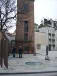 La statua, posta nel transetto di sinistra, dove sono affrescate scene di inaudita violenza di cui sono vittime alcuni martiri, sembra custodire, solitaria, l’entrata del piccolo cimitero dei Monaci e suggerire qualcosa di profondo e di misterioso.