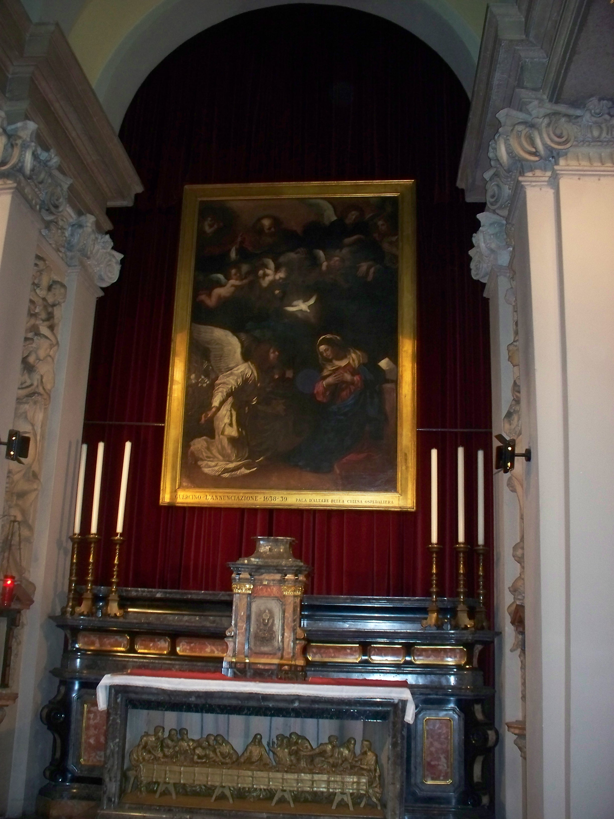 Di fronte al portone principale troviamo la chiesa dell’ospedale, che ha nel suo interno un interessante dipinto del Guercino, “L’Annunciazione”.