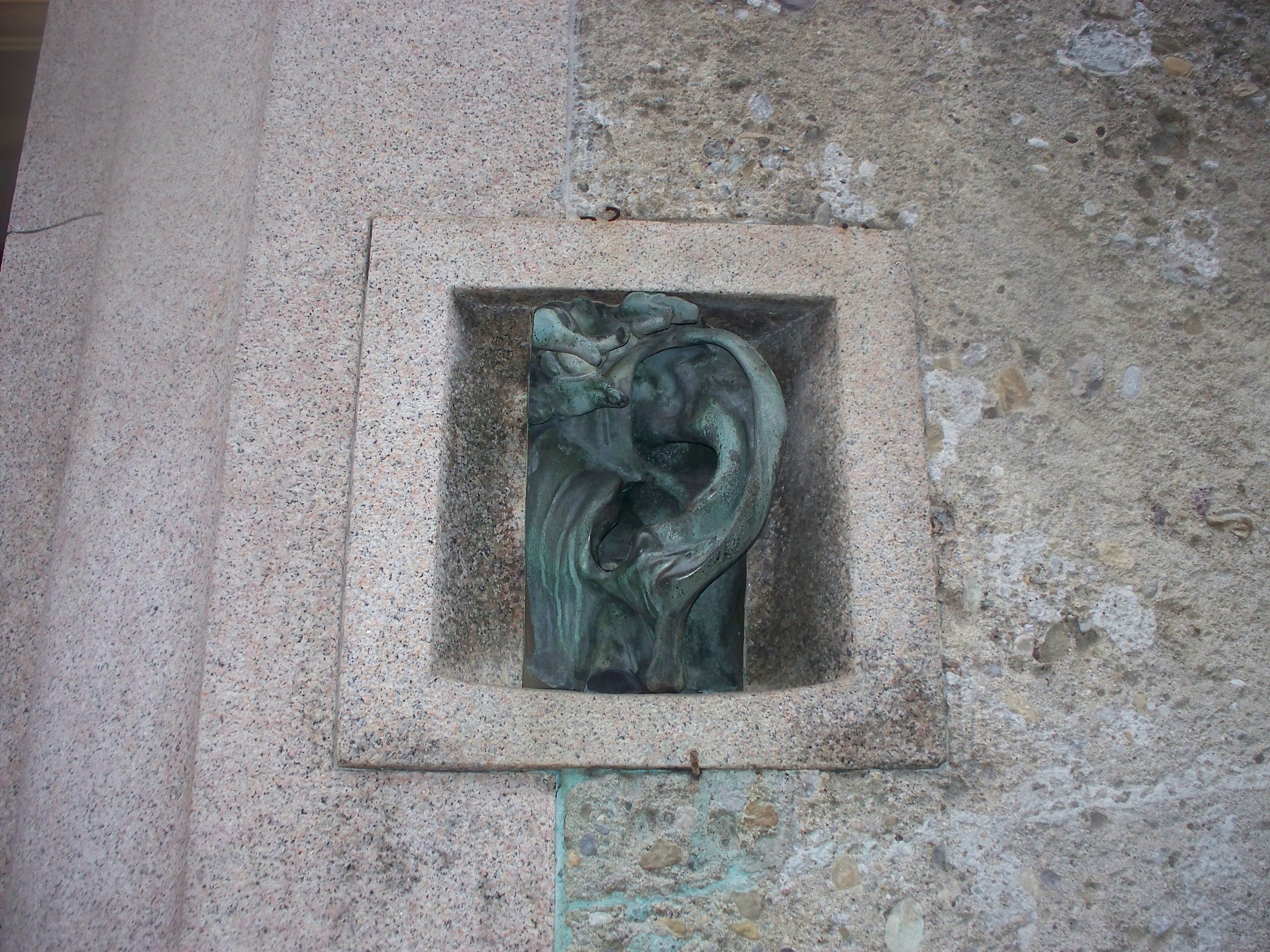 Infatti un grande orecchio in bronzo con tanto di particolari anatomici, opera di Adolfo Wildt, era l’innovativo e ironico citofono collegato alla portineria di questo palazzo. Ora non è più in funzione, ma si dice che, sussurrandovi qualche desiderio, questo si possa avverare.