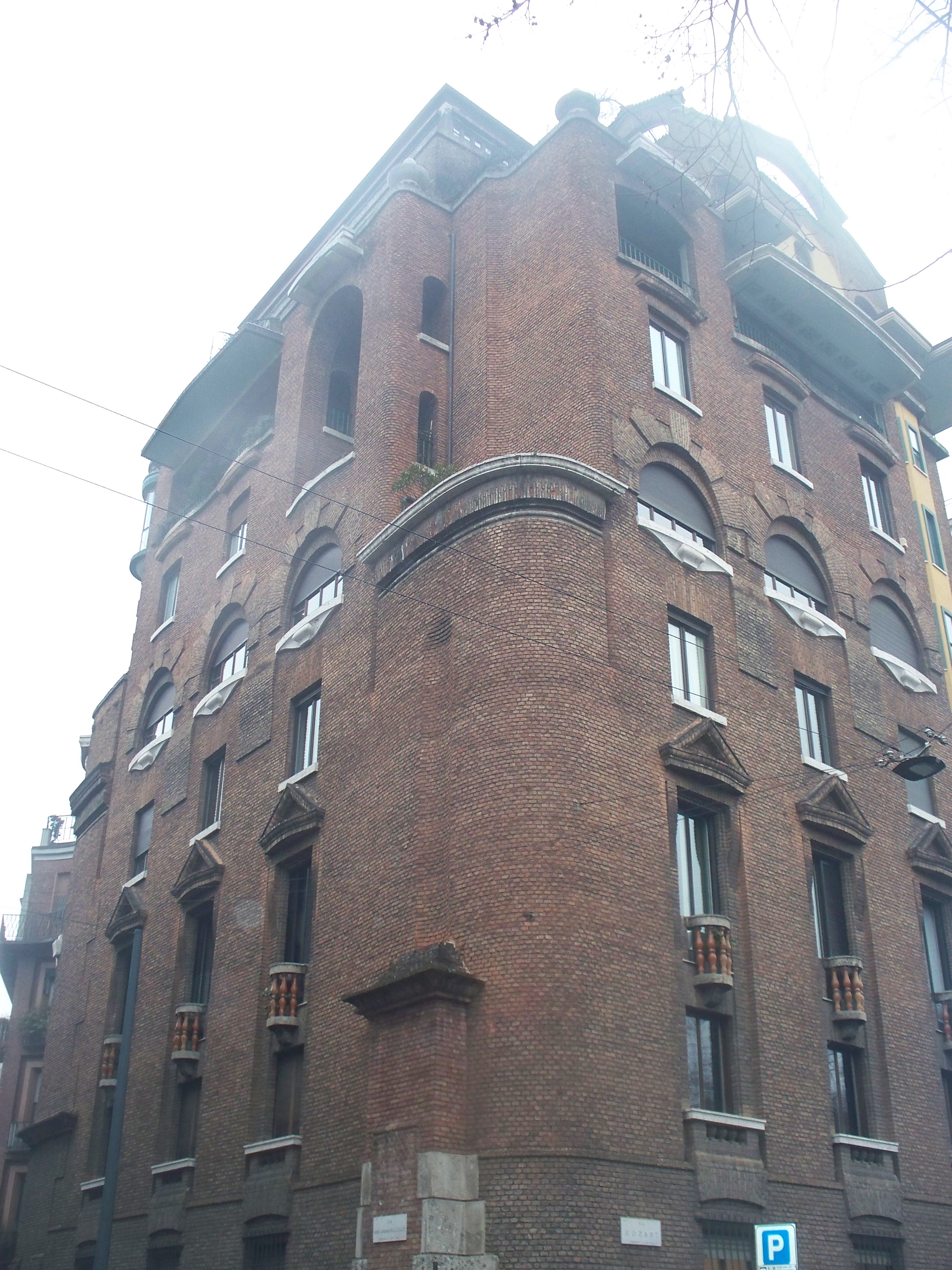 Costruito tra il 1929 e il 1932, a pianta triangolare, dall’architetto Aldo Andreani, è una mescolanza di stili, forme e materiali; i tranquilli mattoni milanesi creano un edificio eclettico dall’androne raffinato.