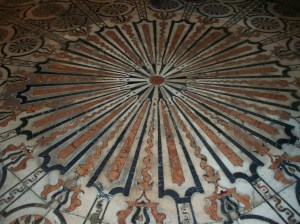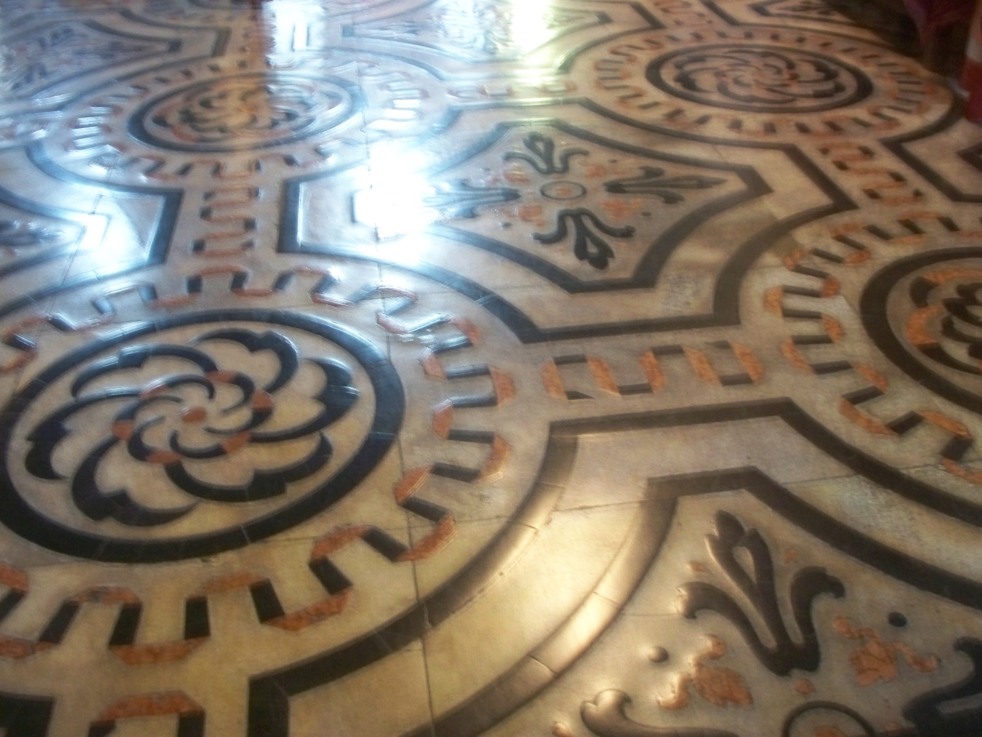 Iniziamo il nostro percorso guardando il pavimento, secondo noi, uno dei più belli di Milano. Camminando, sentiamo quasi i diversi disegni che lo compongono, più o meno levigati dal tempo e dai passi dei fedeli.