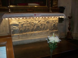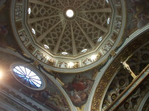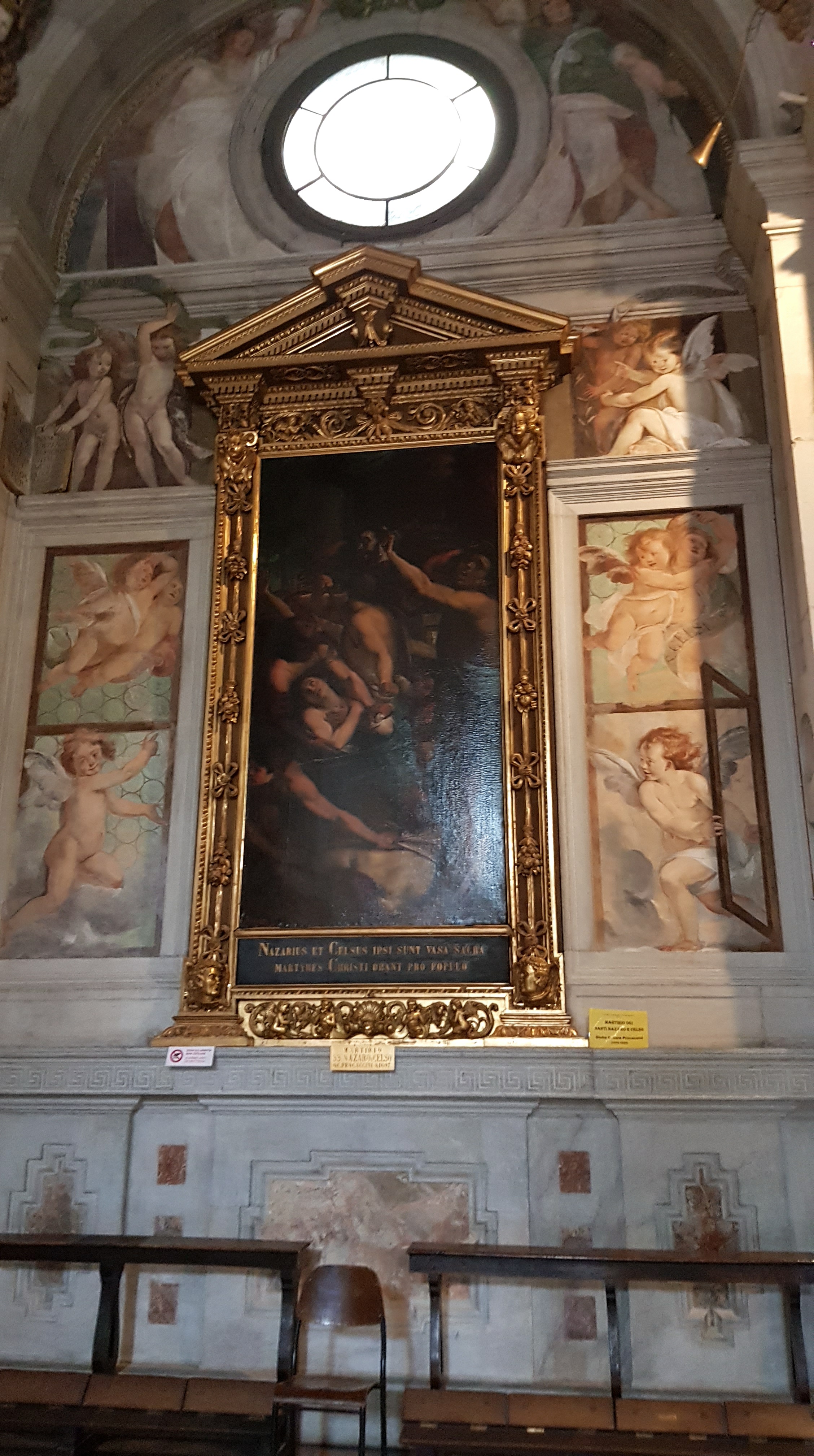 Poco lontano un celebre quadro del Procaccini rappresenta il “Martirio dei Santi Celso e Nazaro”. Come non restare colpiti dal contrasto tra il buio della scena dipinta e la luminosità che circonda gli angeli sulle pareti accanto?