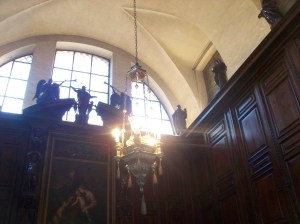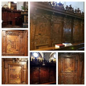 Diamo un’occhiata anche al coro, un gioiello di legno intarsiato decorato con paesaggi, vere e proprie opere d’arte. Vi si possono scoprire anche cagnolini, uccellini, momenti di vita quotidiana.