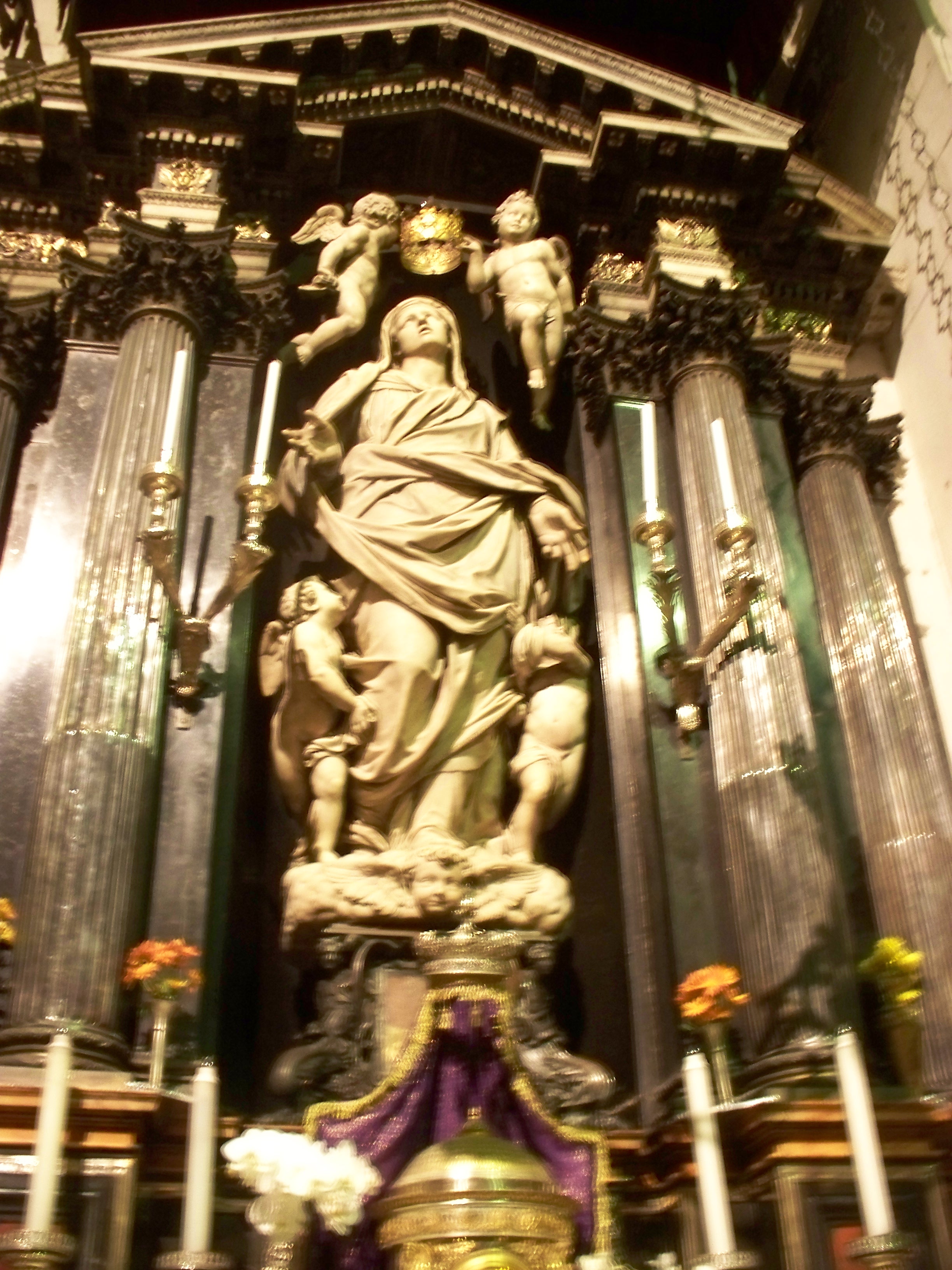 Sopra questo altare una grande statua della Vergine Assunta realizzata da Annibale Fontana a fine Cinquecento. Intorno a lei danzano alcuni angioletti del Procaccini, che accolgono gli sposi quando portano il bouquet come da antica tradizione.