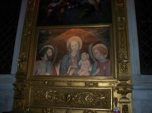 Tanta opulenza quasi “nasconde” il dipinto della Madonna dei Miracoli (di cui abbiamo già parlato nei precedenti articoli), pietra dipinta rimasta sempre allo stesso posto che ora si trova a livello del pavimento, protetta da due ante d’argento.