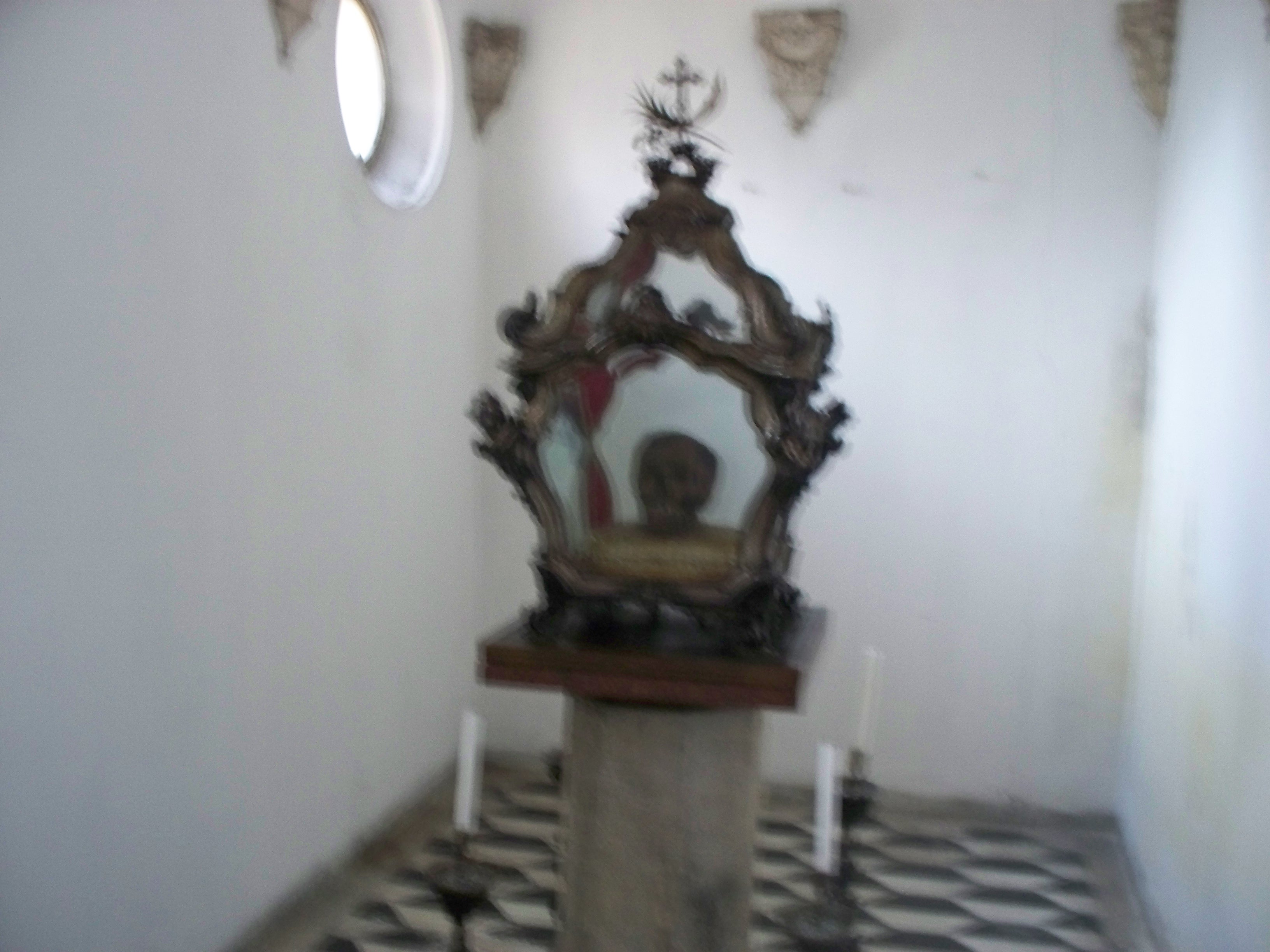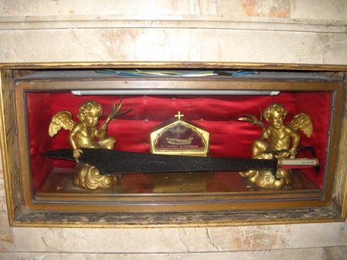 Un uomo cammina faticosamente su una trave sospesa nel vuoto portando sulle spalle curve uno zaino di luci. Opera dello scultore spagnolo Bernardì Roig, è purtroppo poco conosciuta; ne parleremo con una prossima cartolina. Questa installazione ci riporta ai nostri Martiri di Monforte e al loro sacrificio avvenuto circa mille anni fa. Purtroppo le stragi continuano ancora oggi…