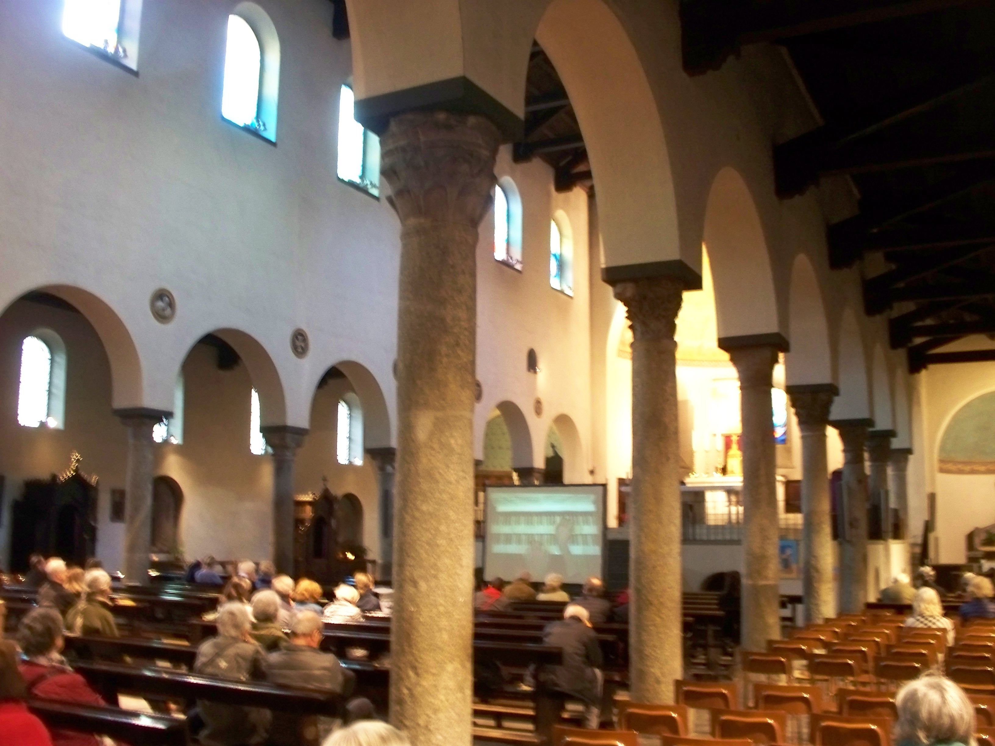 Ancora oggi, però, sappiamo come la convivenza di credi diversi (che spesso sono anche alibi per interessi non religiosi) sia difficile e motivo di dolorosi e drammatici scontri. Quando, nel 374 d.C., Giustina, madre del giovane Imperatore Valentiniano II, diede ordine di cedere una basilica della nostra città ai fedeli del teologo “eretico” Ario, di cui era una seguace, trovò la vittoriosa opposizione del vescovo Ambrogio. Alla fine i soldati imperiali, che avevano assediato la chiesa, dove il vescovo aveva radunato i fedeli per non consegnarla agli ariani, si ritirarono. Alla Pinacoteca Ambrosiana si trova un interessante dipinto del Bramantino che celebra la vittoria di Ambrogio su Ario accostata a quella di San Michele Arcangelo sul demonio.
