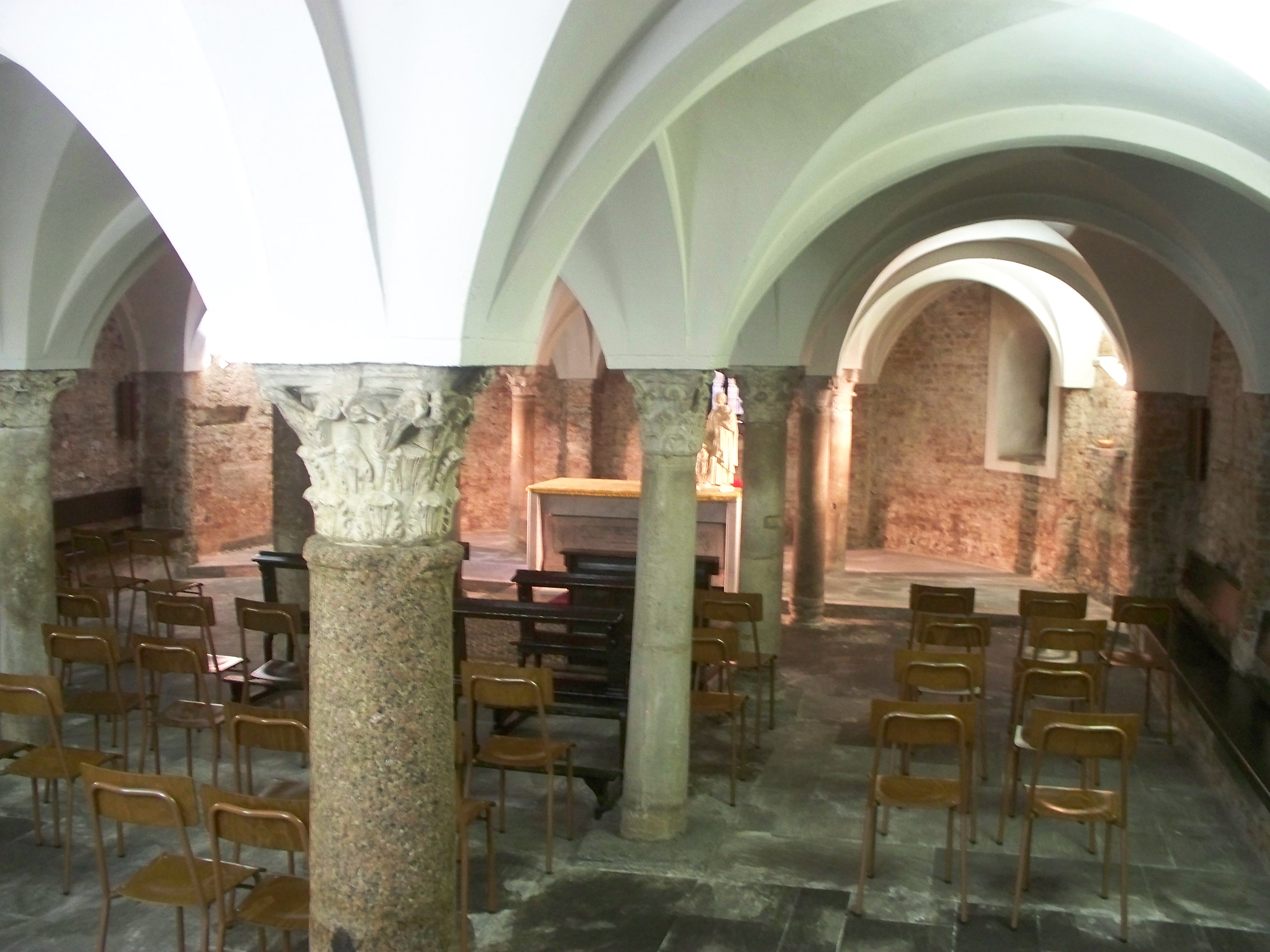 In questa chiesa, dalla storia secolare e insolita, si conserva la pietra (ora trasformata in fonte battesimale) che, secondo la tradizione, serviva a Sant’Ambrogio per salire in groppa alla mula Betta.