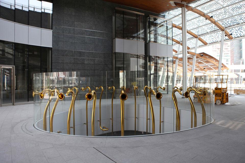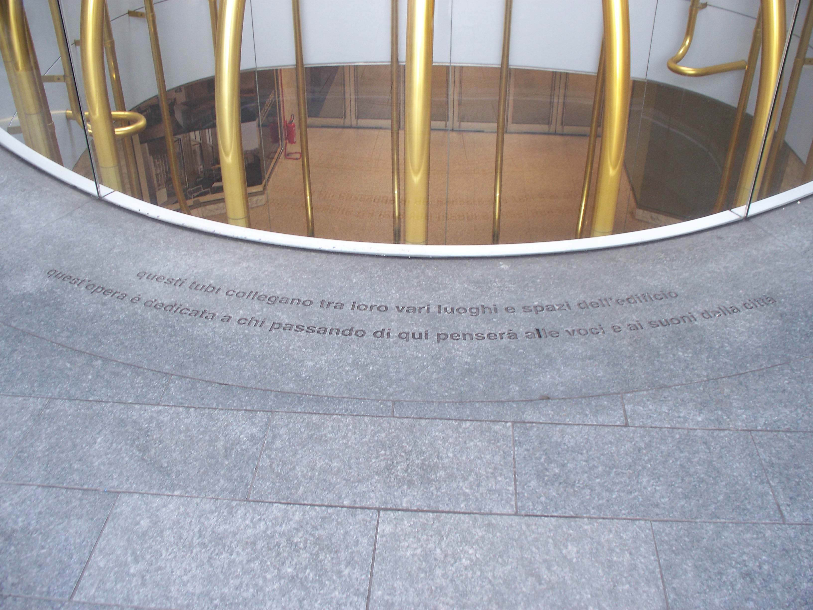 Soffermiamoci ad osservarlo appena usciti dalla Stazione: come una lama taglia lo spazio e la sua “pelle” è liscia e trasparente, tutta in vetro e metallo.