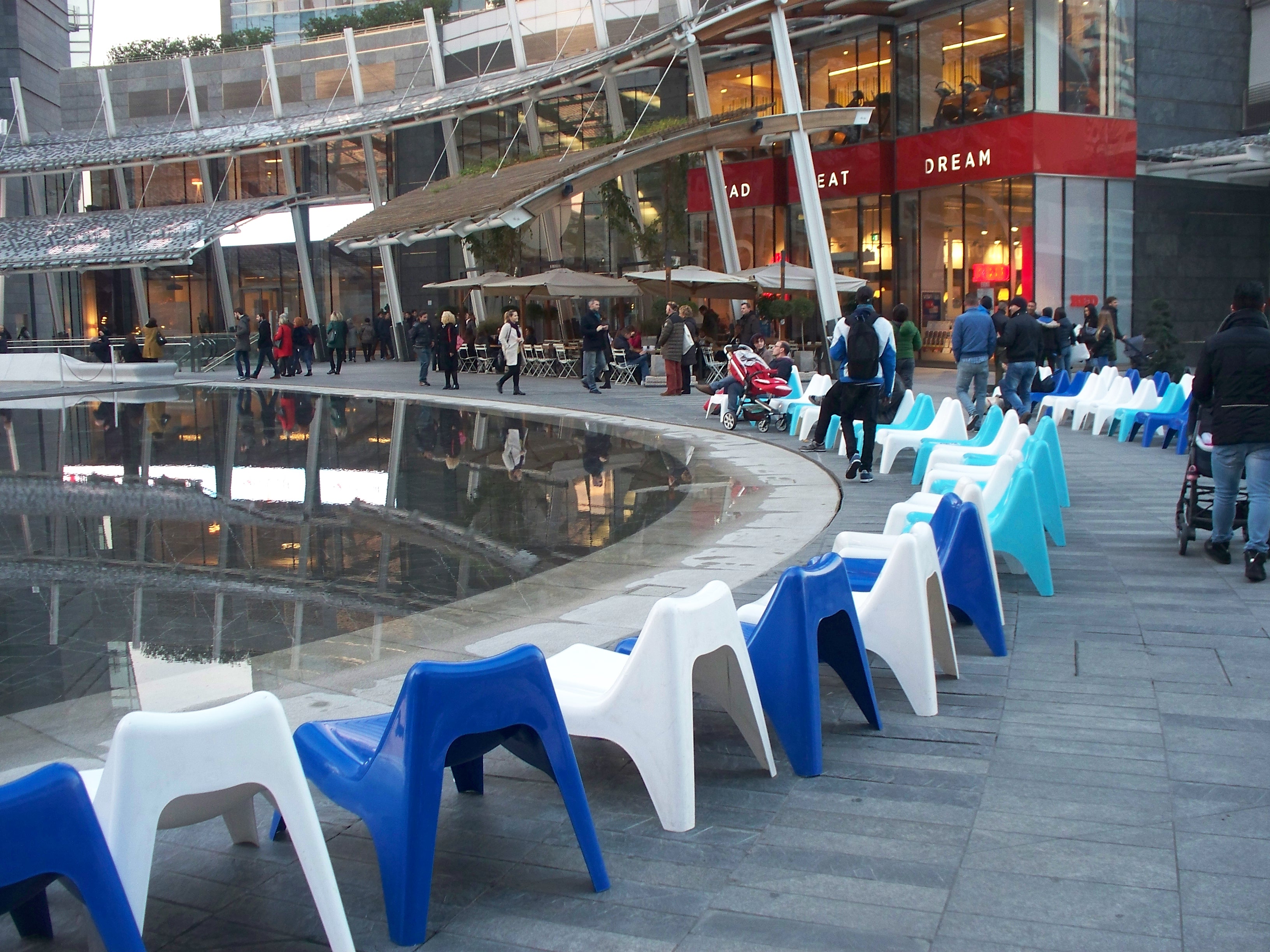 L’attacco a terra, la “pianura”, forma una grande piazza coperta, una delle più grandi d’Europa, dove si aprono bar, ristoranti, un asilo nido, l’auditorium. Vengono ospitati anche manifestazioni ed eventi artistici e culturali.